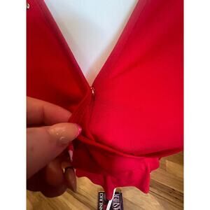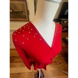 MICHAEL KORS RED FAUX WRAP CINCH WAIST LONG SLEEVE BLOUSE WOMENS XTRA SMALL