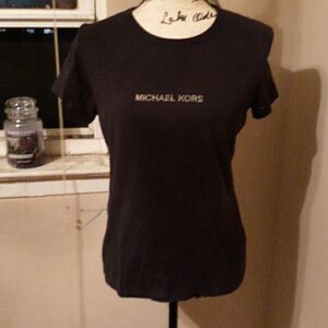 MICHAEL KORS RHINESTONE LOGO BLACK SHORT SLEEVE TEE L