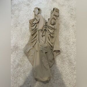 MICHAEL KORS RUFFLE DEEP V-NECK ONE PIECE SWIMWEAR, KHAKI, SIZE 10 NWT