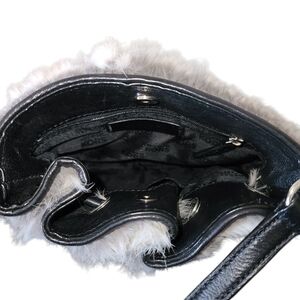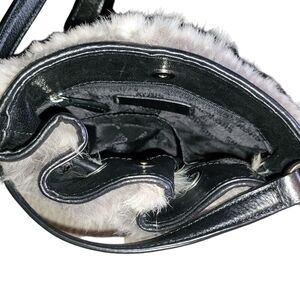 MICHAEL KORS Rabbit Fur Crossbody Bag With Silver Hardware and Black Detailing