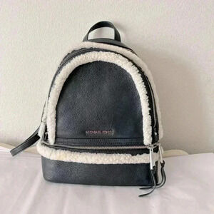 MICHAEL KORS Rhea Black Leather Sherpa Lined Backpack Rare