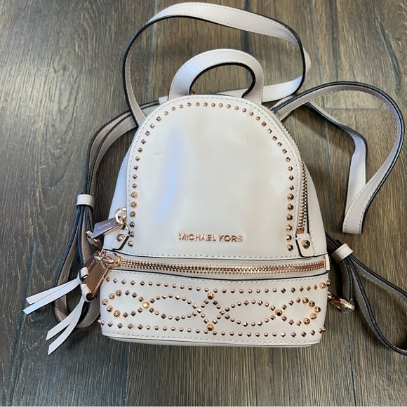MICHAEL KORS Rhea Mini Leather Backpack Studded Soft Pink/Rose Gold