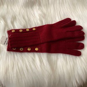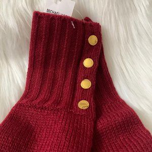 MICHAEL KORS Ribbed Knit Gloves with Buttons in Maroon