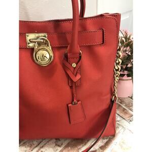 * MICHAEL KORS MK Riley Optic RED LOCK Charm Leather Large Satchel Chain Crossbody Bag