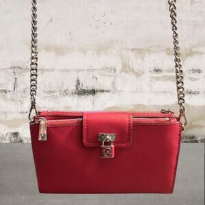 MICHAEL KORS Ruby Small Double-Zip Saffiano Leather Crossbody Bag in Pink