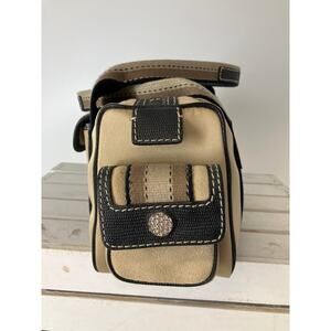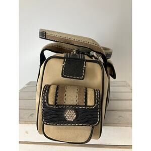 TWO DOUBLE BUCKET HANDLES. THIS IS NOT A SHOULDER BAG.