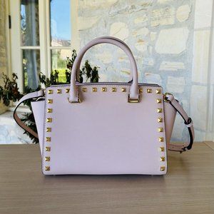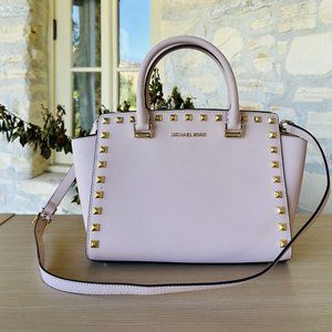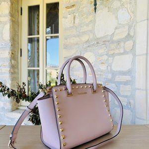 MICHAEL KORS SELMA MD Studded TZ Satchel/ Large Flat MF PHN Case Leather Ballet