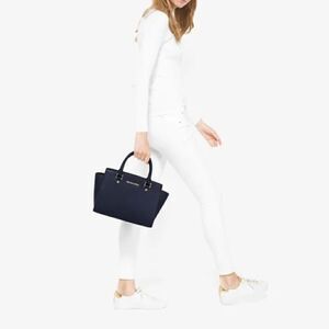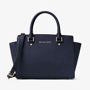 MICHAEL KORS SELMA Saffiano Leather Satchel Navy Blue NEW + Dust Bag