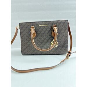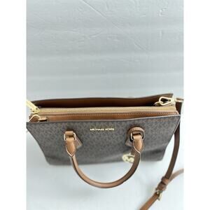 MICHAEL KORS SHEILA MEDIUM TRIPLE COMPARTMENT SATCHEL SHOULDER BAG MK BROWN LOGO