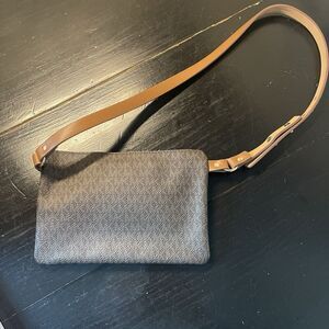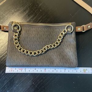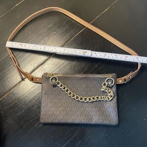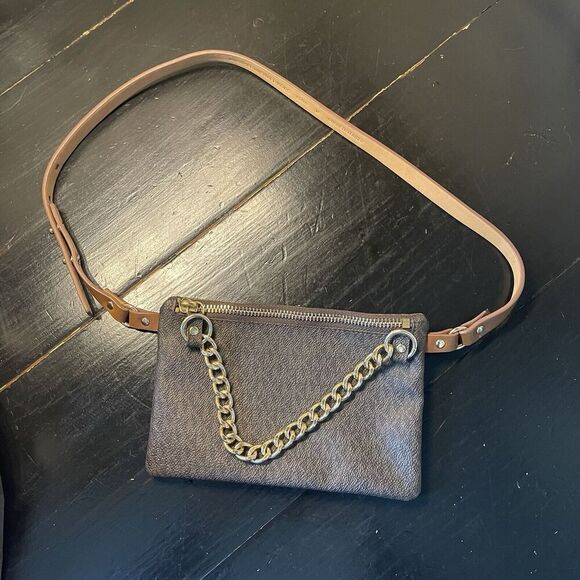 MICHAEL KORS SIGNATURE FANNY PACK BELT BAG SNAP CHAIN PURSE BROWN 554131