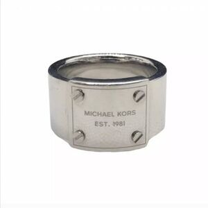 MICHAEL KORS SILVER STEEL LOGO PLATE RING Size 6.5