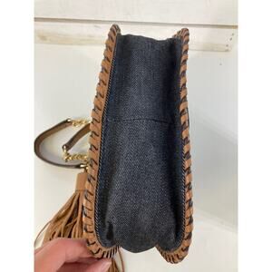 MICHAEL KORS SMALL DENIUM AND BROWN LEATHER SHOULDER BAG
