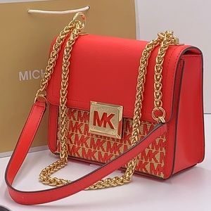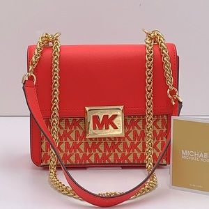 MICHAEL KORS SONIA SMALL SQUARE SHOULDER XBODY CORAL REEF COLOR