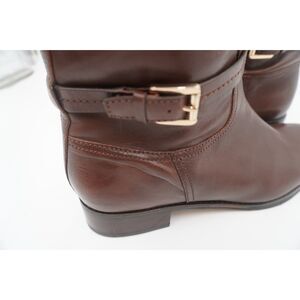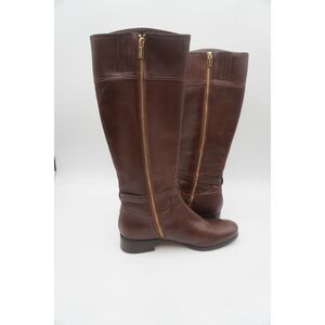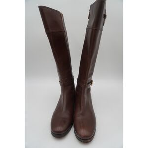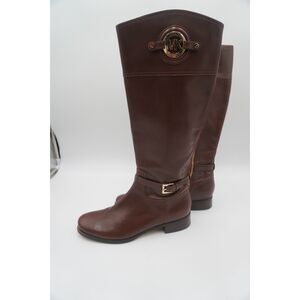 MICHAEL KORS STOCKARD GOLD MK LOGO DARK COFFEE RIDING BOOTS US 11M