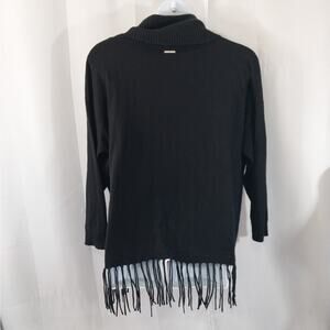 From Michael Kors, this sweater is just deliciously luxe! In a fine black knit, it features oversized ease, DRAPEY flow, and a fringed hemline! Long sleeves, big cowl neck, Size 2X! A gorgeous sweater! Excellent! Superb EUC Condition! **ABSOLUTELY GUARANTEED CONDITION: EUC MINTY-EXCELLENT TO LIKE-NEW, by Lily @HauteClub!***