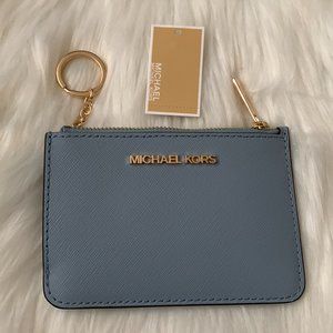 MICHAEL KORS Saffiano Leather Coin, Card, Key Wallet in Pale Blue