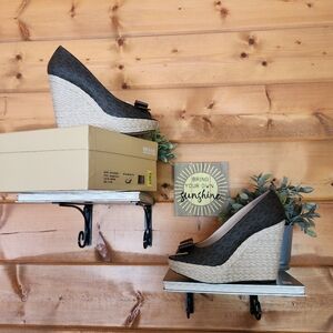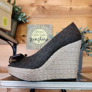 MICHAEL KORS Signature PVC Meg Wedges Jute Bow Espadrille Brown Platform Sz 8.5M