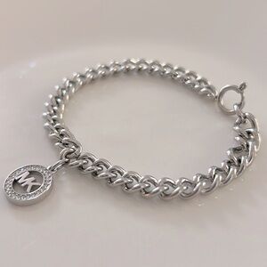 MICHAEL KORS • Silver Chain Logo Charm Bracelet
