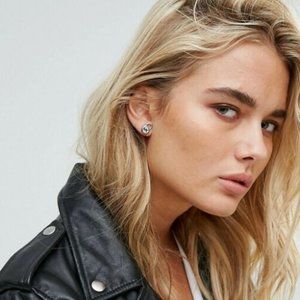 Michael Kors stud earrings feature silver tone stainless steel and post closures.