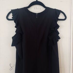 Brand New Michael Kors Little Black Dress Sleeveless With Ruffles Scoop Neck. This dress is simply elegance and timeless. Has subtle shaping, rear zipper and rear slit. Flowy ruffled sleeves. Stock photo shows styling- not actual dress. Great amount of figure hugging stretch!