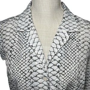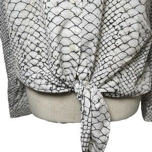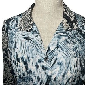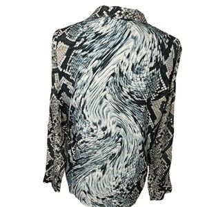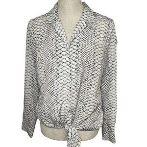 MICHAEL KORS Snake Print Button Down Silver Blue Blouse Tie Front Bundle Sz M