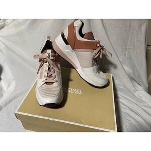 Michael Kors Georgie Trainer Athletic Mid Sneaker Shoe in Soft Pink. Women’s Size 7.5M. NEW in box but the box does have damage on the bottom. See picture. #43F0GEFS9D
