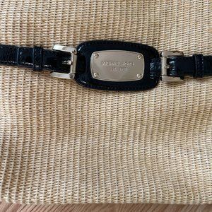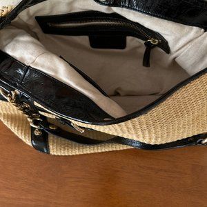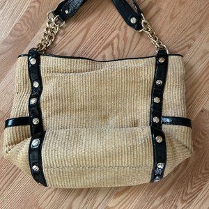 MICHAEL KORS Soft Woven RATTAN w/ Black Leather Trim Medium Satchel Bag Purse