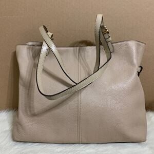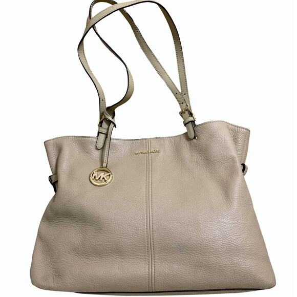 MICHAEL KORS Spacious Large BISQUE Beige Pebbled Leather LENOX Shoulder Tote