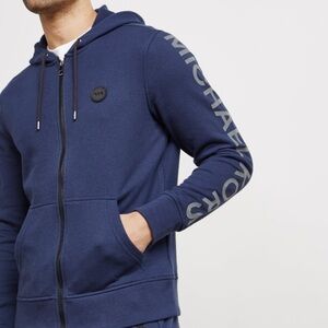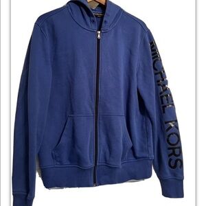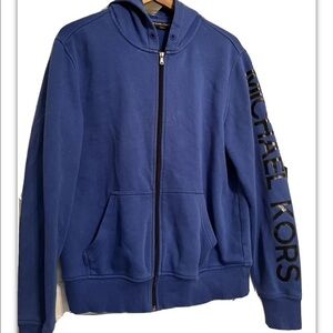 MICHAEL KORS Spell Out Men Sz M Full Zip Jacket Hoodie Blue