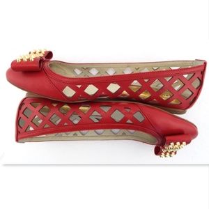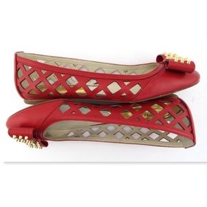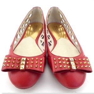 MICHAEL KORS Spike Stud Red Bow Ballet Flats 7