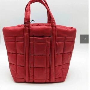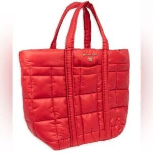 MICHAEL KORS Stirling quilted recycled nylon puffy SMALL tote bag RED …