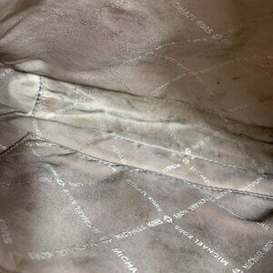 There are noticeable marks around the leather. Interior fabric has "stains" that have not been treated and will need to be cleaned. Width: 9", Height: 6", Depth: 2", Strap drop: 20" adjustable.