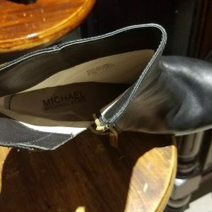 Leather Boots with studs on the back heels. There are signs of general wear such as small scratches and wrinkling around ankles. Scratches could be polished to reduce.