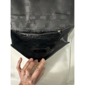 MICHAEL KORS Sutton Black Leather Clutch Gold Buckle Handbag Evening Bag New!