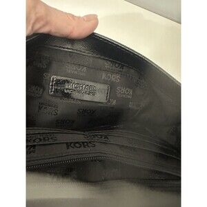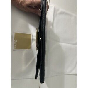 The Michael Kors Black Leather Clutch with Gold Buckle is a stylish and versatile handbag perfect for evening events, parties, or formal occasions. Made from high-quality leather with a pebbled finish, this small rectangular bag features a magnetic closure, gold-plated hardware accents, and inner pockets for organization. The black exterior color with gold accents adds a touch of luxury and sophistication, making it a timeless and classic accessory for any wardrobe. Perfect for women who appreciate designer fashion and want to make a statement with their handbag. Measures 10X5.