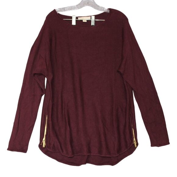 MICHAEL KORS Sweater Sz Large Burgundy Knit Gold Metal Zippers