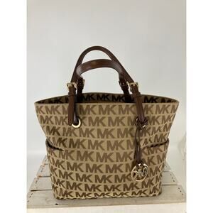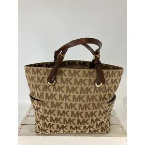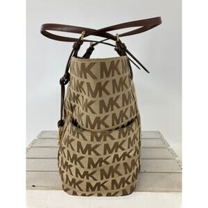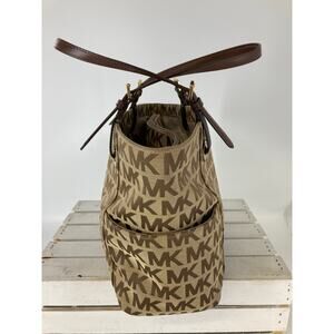 MICHAEL KORS, TAN CANVAS SIGNATURE WOMENS LARGE SHOULDER BAG