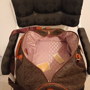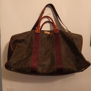 MICHAEL KORS TRAVEL XL XLARGE BROWN PVC CARRYALL DUFFLE BAG HANDBAG