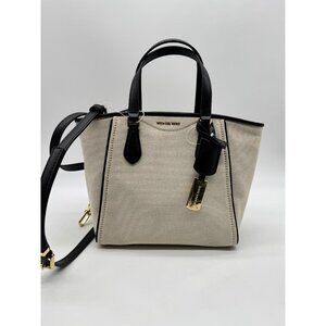 MICHAEL KORS Taryn canvas small tote crossbody bag- Natural/ Black