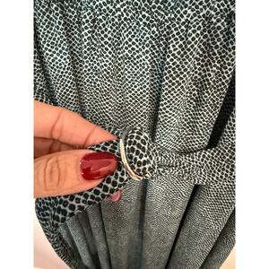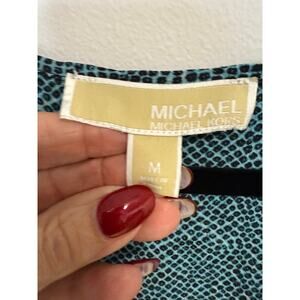 MICHAEL KORS Teal & Black Animal Print Sleeveless Pleated Maxi Dress Tie Waist M. Professional, dressy, work wear, date night, elegant, classic, chic, This Michael Kors maxi dress is a stunning addition to your wardrobe! Featuring a unique teal and black animal print, this sleeveless dress has a flattering pleated design and a tie waist for a comfortable and stylish fit.