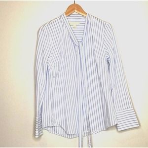 MICHAEL KORS Tie Collar Striped Blouse, size Large