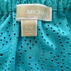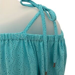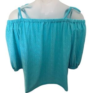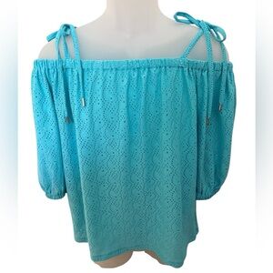 MICHAEL KORS Turquoise Eyelet Off-Shoulder Ties Blouse Women PM Petite Medium