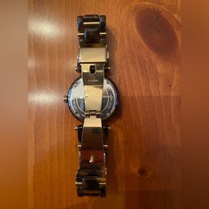 Michael Kors watch has 1 3/8” gold face, bezel, clasp and accents on tortoise band. Excellent condition!