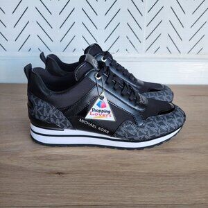 ❤️MICHAEL KORS WILMA Trainer Sneaker Sz 6 Women Black Monogram Fashion Lifestyle
