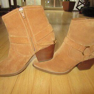 MICHAEL KORS WOMENS ANKLE BOOTS/SUEDE/COWBOY/WESTERN/TAN/SIDE ZIP/SIZE 7.5M!