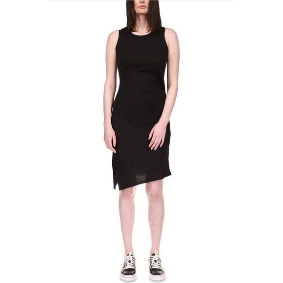 MICHAEL KORS WOMENS Navy Asymmetrical Hem Pullover Sleeveless Sheath Dress PS