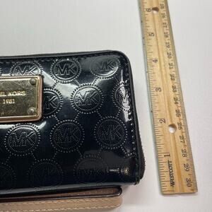 MICHAEL KORS Wallet Logo Zip Around Black Patent Leather Fits Phone Clutch NICE