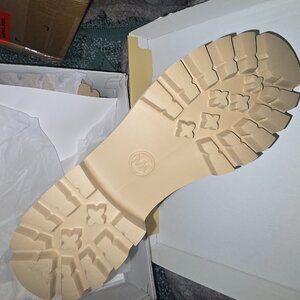 NWOT; Fashion forward combat bootie. A quintessential combat boot with a fashion-forward twist, the Weiss balances a classic lace-up design in smooth faux leather with a chunky lug sole. This version features our Signature logo-print panels for graphic contrast. Style it with everything in your wardrobe—whether it’s jeans, a dress, or a modern suit.