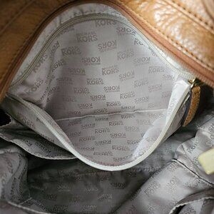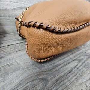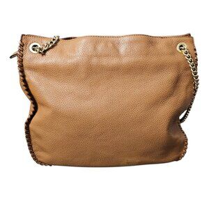 MICHAEL KORS Whipped Chelsea Brown Leather Gold Chain Large Shoulder Bag COA