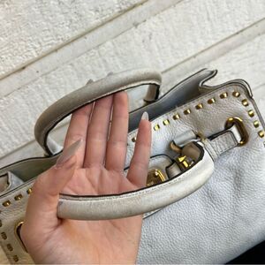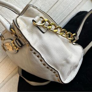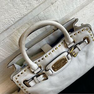 MICHAEL KORS White Gold Hamilton Satchel Tote Handbag Jet Set Raven Fulton